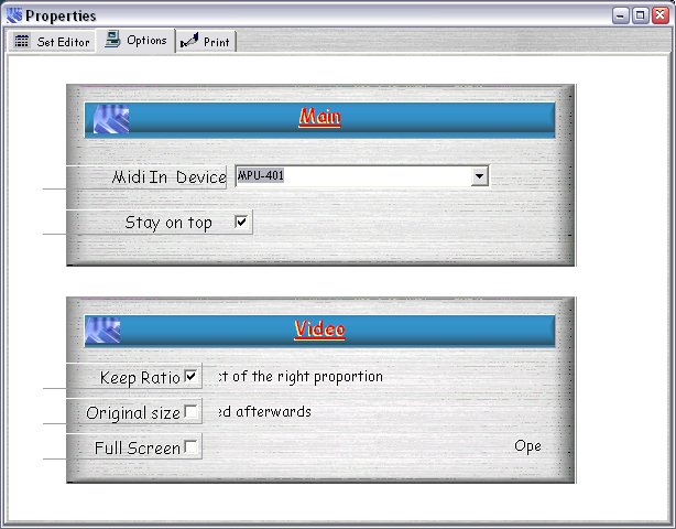 Ce panneau permet de choisir des options pour la fenetre principale associée et pour la fenetre vidéo associée.